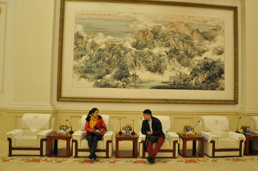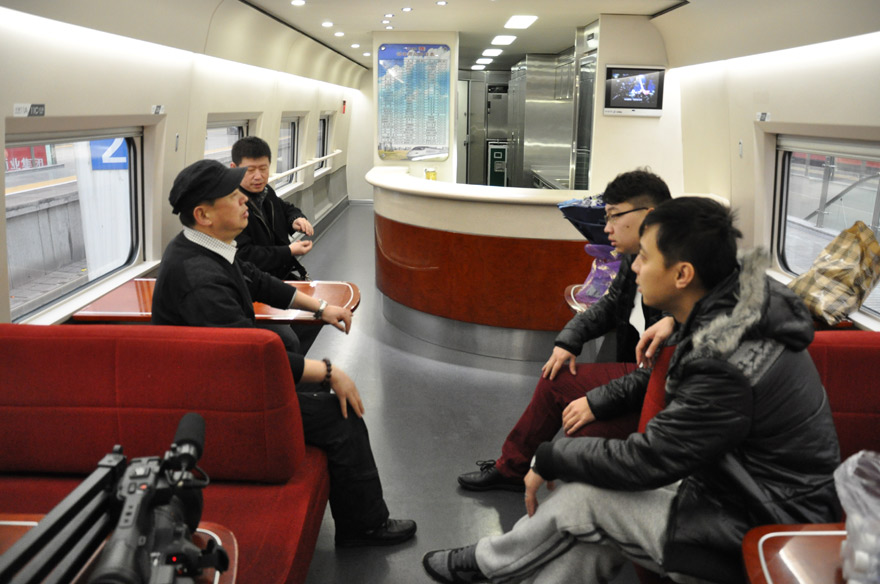 王光辉总经理为帅哥靓女安排在车站贵宾室休息准备登上动车。