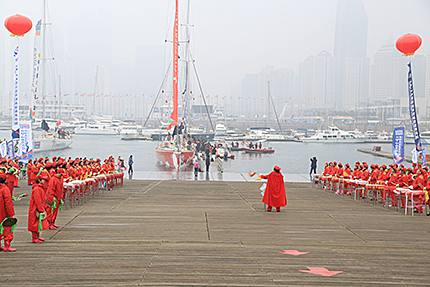 光辉文化传播全程组织拍摄2013-2014克利伯环球帆船赛青岛站欢迎青岛姑娘宋坤仪式。