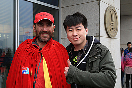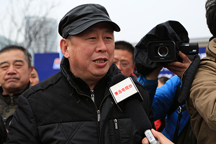 在欢迎青岛姑娘宋坤的仪式现场,各大媒体正在采访王光辉总经理